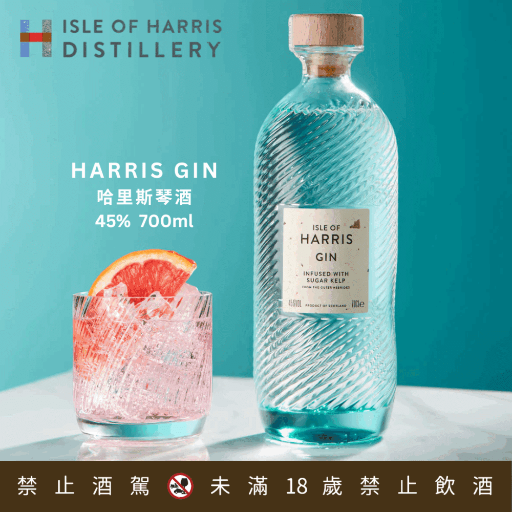 一間位於蘇格蘭西北離島哈里斯(Harris)島上的Harris酒廠,使用大海的產物 – 昆布作為琴酒的原料之一,而這些昆布都是哈里斯島上手工採集而來。酒廠釀酒團隊於2013年與植物學家Susanne Masters合作,共同研發這款「昆布琴酒」。Harris酒廠希望把酒廠及島嶼的特色注入琴酒之中,由於島嶼上脆弱的生態環境禁不起商業性的大量開採,這種名為Saccharina Latissima的昆布,盛產於島嶼岸邊。即使海岸昆布產量頗豐,為避免對哈里斯島的環境造成引響或是破壞,酒廠人員在採集Saccharina Latissima昆布時仍然小心翼翼;未來,Harris酒廠還會持續在哈里斯島上找尋新的創作元素,嘗試以不同的在地野生植物為琴酒增添風味。