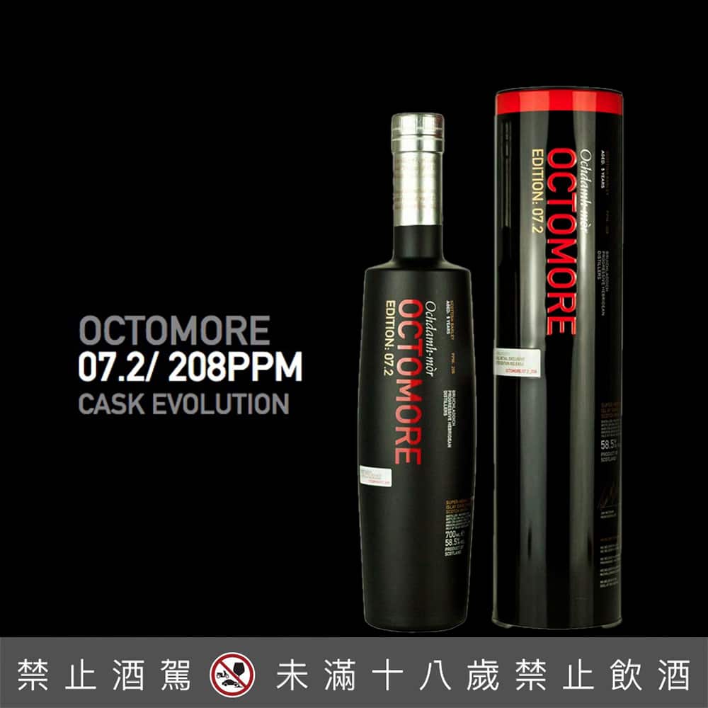 榮獲大獎肯定、威震全球最重泥煤的奧特摩系列,推出2015年最新的7.2限量版,熟成於經典美國白橡木桶及位於隆河河谷北方葡萄園生長的席哈葡萄紅酒桶。猶如首席調酒師JIM MCEWAN施展神秘煉金術之下誕生的奧特摩7.2,泥煤度高達208ppm,原桶強度裝瓶,非冷凝過濾,尊貴、優雅與豐富層次彷彿就是他的同義詞。