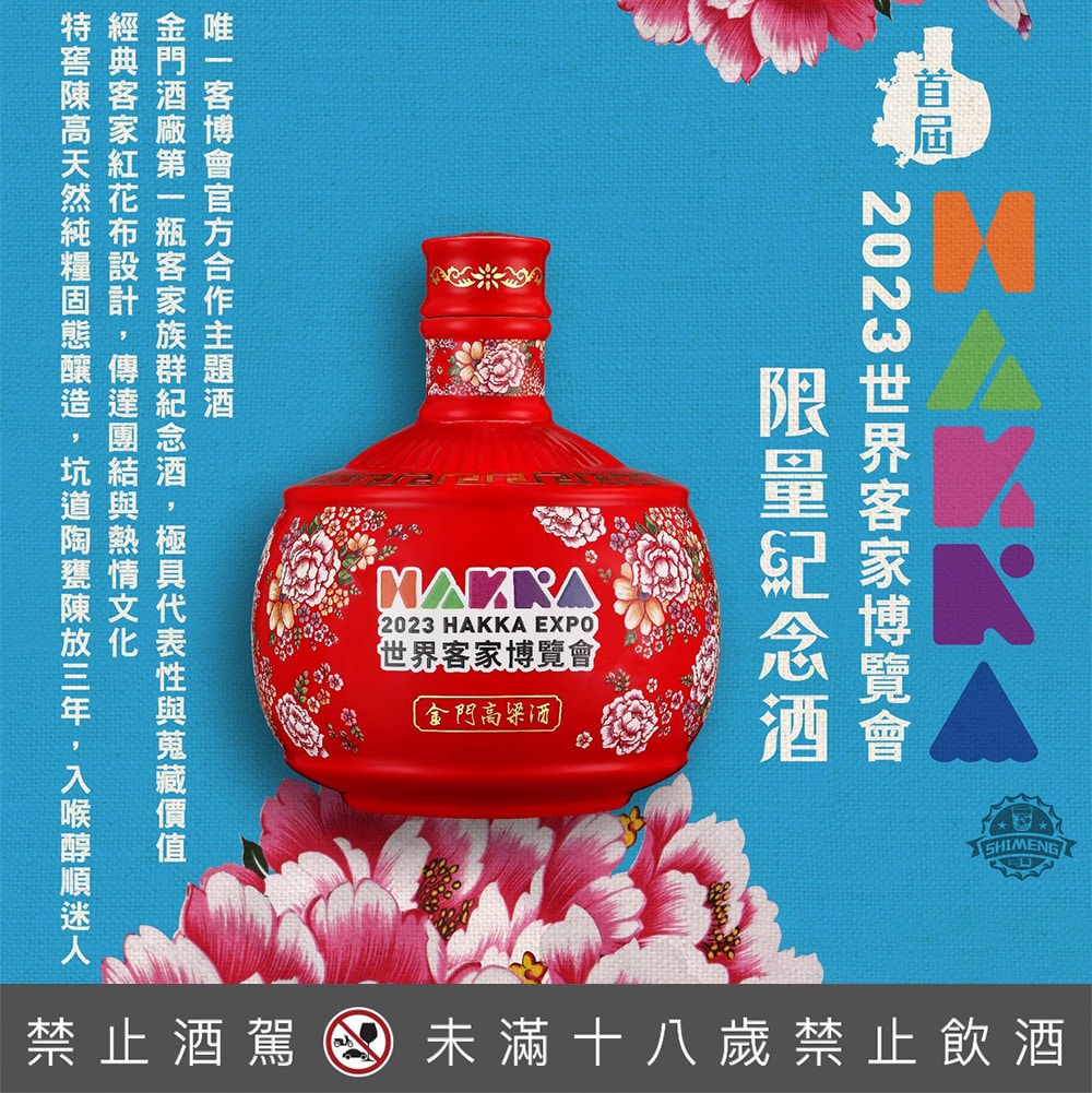 台灣首屆以族群文化為主軸的「2023世界客家博覽會」,自8月11日起為期3個月在桃園盛大登場;不僅如此,大會更與中式白酒龍頭金門酒廠攜手,首度聯名推出唯一一支客家族群紀念酒——「戰酒黑金龍特窖陳高.客博會紀念酒」。