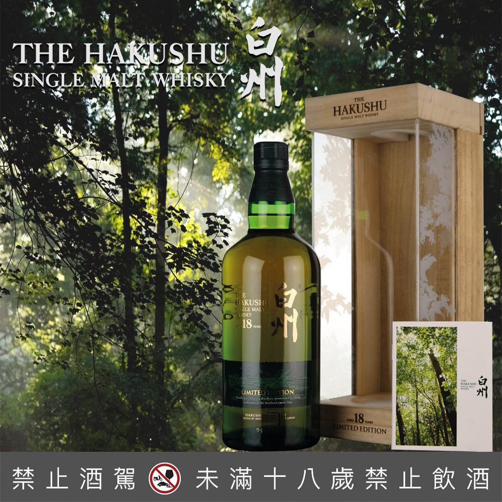 「白州18年」嚴選自森林中的蒸餾廠-「白州」熟成18年以上的麥芽原酒調配而成,在日本長期熟成的麥芽原酒裡,堂堂的卓然於頂峰之上,品質卓越不在話下。