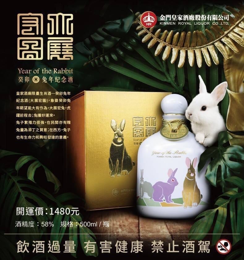 皇家酒廠限量生肖酒─癸卯兔年紀念酒(大展宏圖),象徵癸卯兔年期望能大有作為,大展宏兔,虎躍前程去;兔攜好運來。