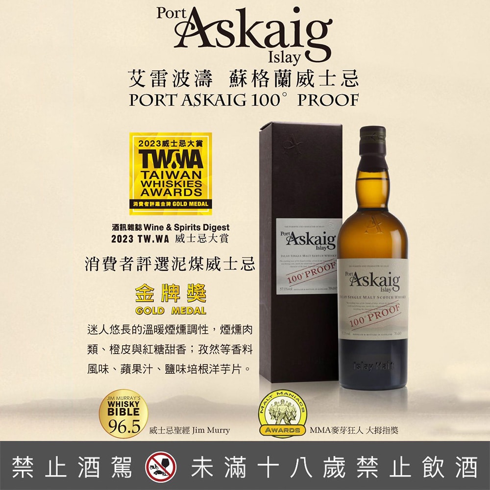 Port Askaig是系列小批次的艾雷島單一麥芽威士忌,由一間知名獨立裝瓶廠Elixir Distillers所擁有的品牌,是以艾雷島東海岸的Port Askaig港名稱命名,所挑選裝瓶的原酒都來自艾雷島上的單一麥芽蒸餾廠,因此酒款充分展現出艾雷島特色,創造風格迷人,並帶有淡淡蜂蜜和花果香氣,以及煙燻和泥煤的特質,將這個迷人島嶼中的濃郁煙燻和輕柔果味融合一體。