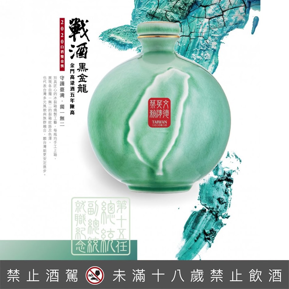 由金門酒廠與味丹企業聯手打造的「戰酒黑金龍 五年陳高總統就職紀念酒」,以「守護台灣」為主題並經總統府正式授權發行,更深具特色及代表性紀念價值。