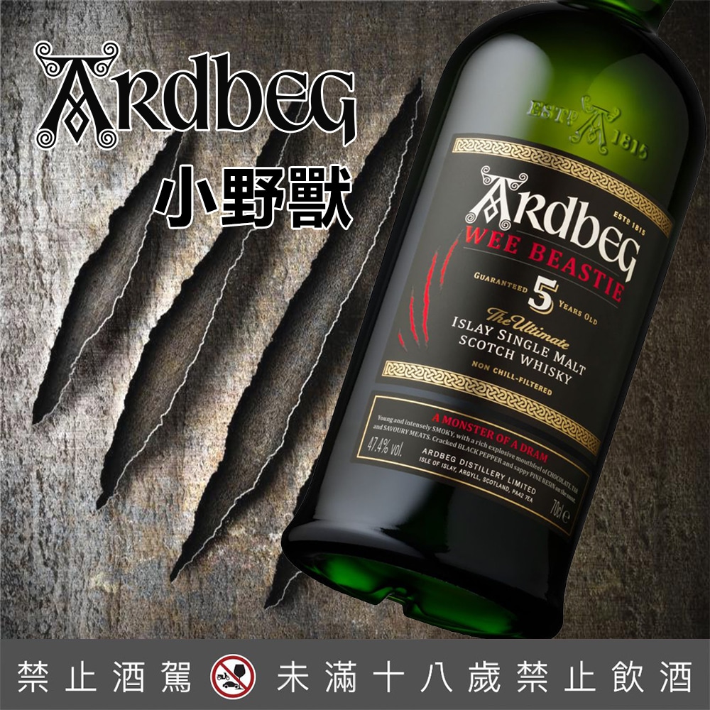 Ardbeg Wee Beastie 「小野獸」,啜飲一口即可深刻感受它在舌頭上留下令人難忘狂野風味。這 味蕾上的衝擊來自於波本桶及 Oloroso 雪莉桶熟陳的複雜風味, Wee Beastie 「小野獸」 融合了強烈的現磨黑胡椒、柔滑松脂與濃郁的煙燻氣息,隨之而來巧克力、雜酚油與焦油的層次在口中爆發,隨著美味鮮美肉香滲入味蕾,包覆口腔的鹹香口感緩緩逸散。