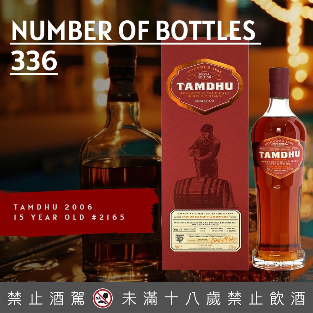 來自 Tamdhu 的雪莉酒炸彈。 專門為 The Whisky Shop 獨家裝瓶,限量出品336支。 於2006年蒸溜,並在美國橡木雪莉酒桶中熟成了15年。 入口散發著辛辣和果味,一款非常出色的雪莉酒作品,在 Whiskybase 得到92分極高的分數。